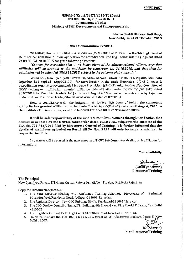 | Name of the Institute | NEW GYAN JYOTI ITI, KOTA |